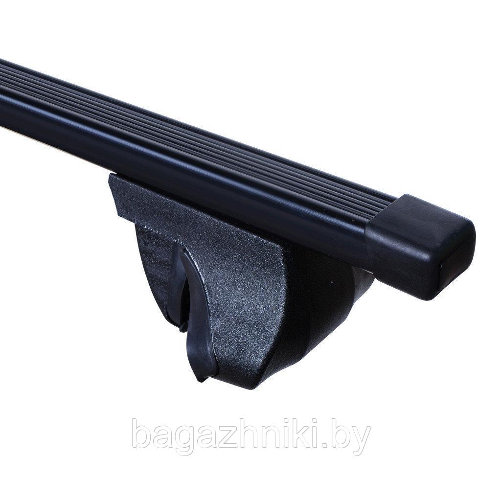 Опоры черного цвета из высокопрочного пластика имеют надежный механизм фиксации и резиновые прокладки, которые помогают предохранить продольные рейлинги автомобиля от механических повреждений.